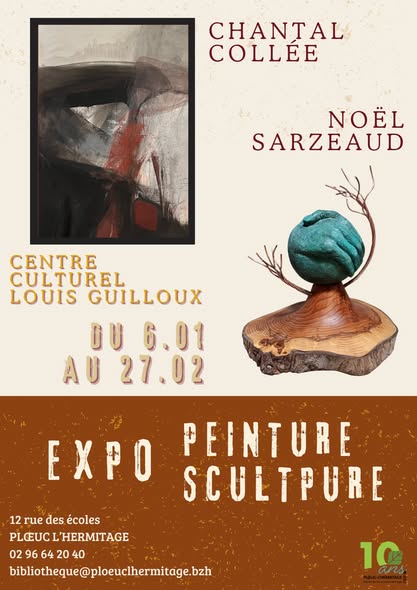 Expo Chantal Collée et Noël Sarzeaud Nous avons le plaisir de vous inviter à l’exposition de Chantal Collée et de Noël Sarzeaud, peintre et sculpteur.